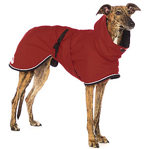 Manteau chaud et luxueux avec un bonnet, spécialement conçu pour les lévriers. Le matériau supérieur est un softshell avec une membrane 8/2,5. La doublure est en polaire douce à poils longs. L'isolation intérieure assure un grand confort thermique. Le manteau offre une protection élevée pour le cou, la poitrine et le ventre du chien. La fermeture velcro autour de la taille est sécurisée par une boucle en plastique. La manteau est doté de marques et d'impressions réfléchissantes. Le bonnet possède une ouverture pratique pour le passage d'une laisse.